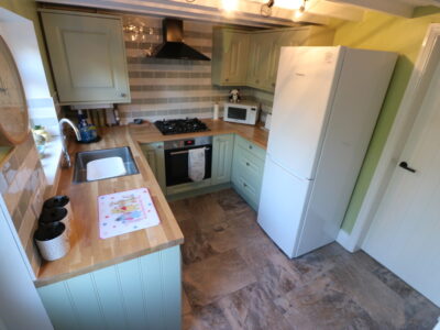 ATTRACTIVE open plan KITCHEN/DINING ROOM. The kitchen area comes fully fitted with light wood wall and base units, 4 ring gas hob, electric oven, FRIDGE/FREEZER (left as goodwill on a non repair basis) and WASHING MACHINE ((left as goodwill on a non repair basis). Double patio doors open onto a low maintenance rear garden with patio area, artificial grass and gate access.